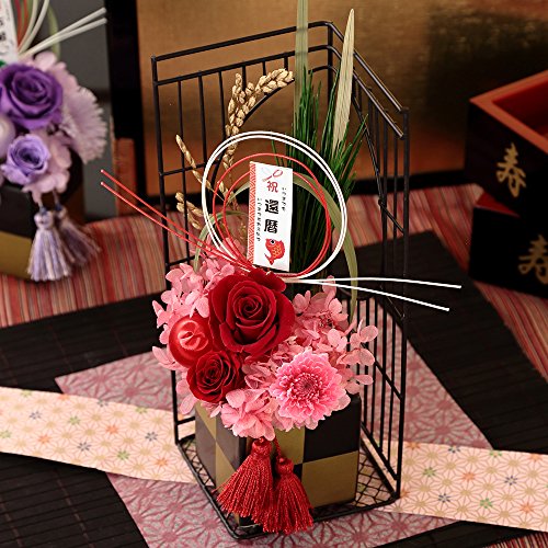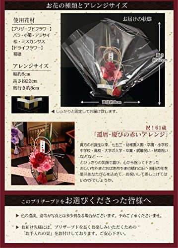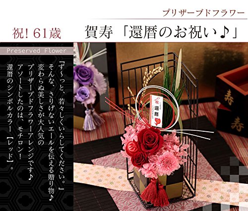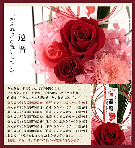 BunBunBee 賀寿のお祝いプリザーブドフラワー【還暦 古希 喜寿 傘寿 米寿 卒寿 白寿】 (賀寿61歳「還暦のお祝い」(赤))