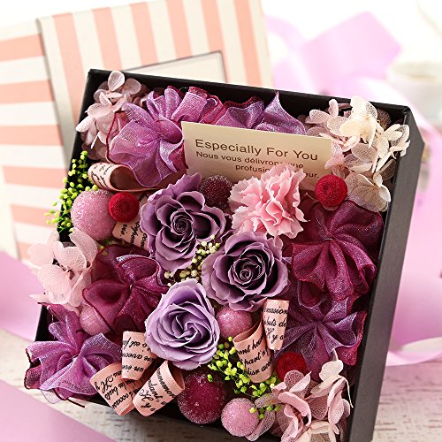 リボンのかかったボックスは、胸の高鳴る贈り物♪リボンを解いてふわりと蓋を開ければ、期待を上回る上質なサプライズ感。広がる、パープルのエレガントでチャーミングな世界感が、受け取った方を魅了します♪華やいだ笑顔に会える素敵な感謝の贈り物。オススメ致します!