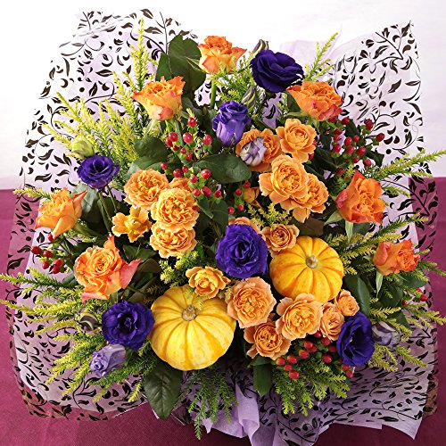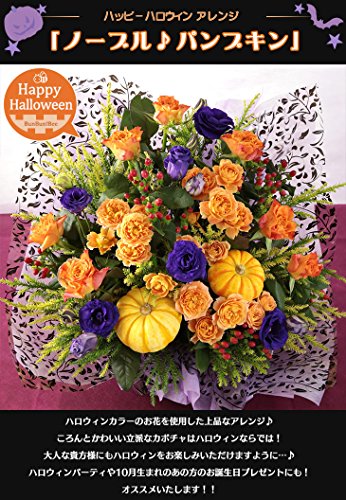ハロウィンカラーのお花を使用した上品なアレンジ♪ころんとかわいい立派なカボチャはハロウィンならでは!大人な貴方様にもハロウィンをお楽しみいただけますように…♪ハロウィンパーティや10月生まれのあの方のお誕生日プレゼントにも!オススメいたします!!