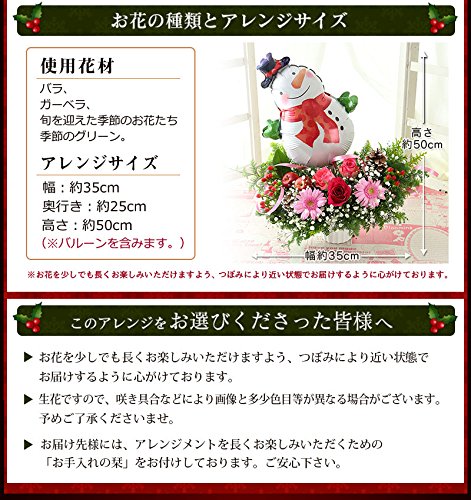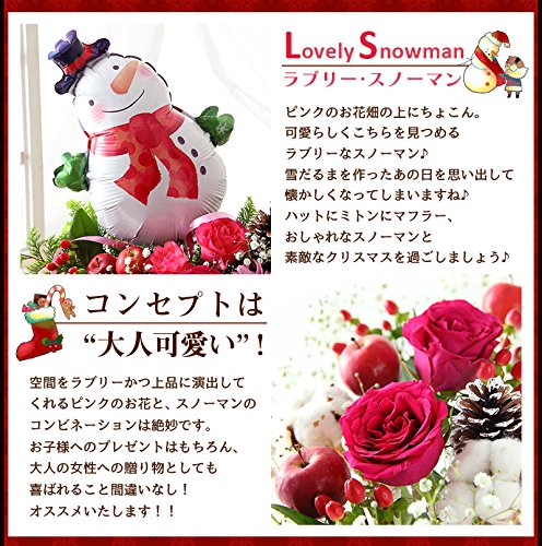 思わずニッコリ。クリスマスを、更に楽しく盛り上げるバルーンアレンジ♪ピンク系で可愛くまとめたお花たちとスノーマン♪甘い仕上がりが魅力です!
