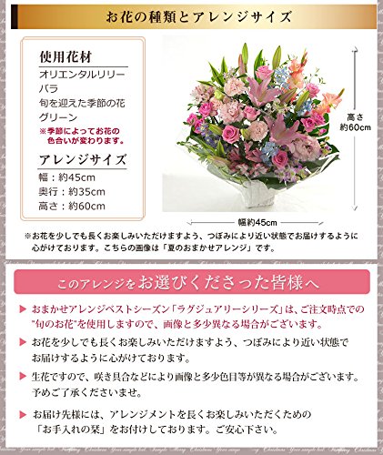 - ※冬期は北海道・青森県・秋田県・岩手県への生花のお届けは商品の性質上、凍結の恐れがあるため出荷を見合わせております。恐れ入りますが対象地域へのお届けは、自動キャンセルとさせていただきます。予めご了承ください。