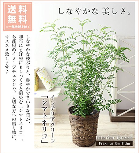 BunBunBee 観葉植物 シマトネリコ【6号鉢・メッセージカード・バンブー製バスケット付き】