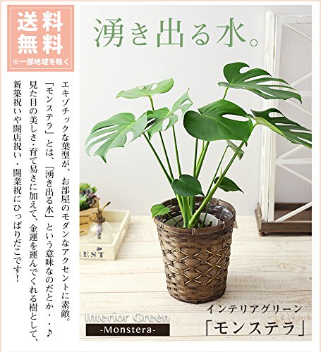 BunBunBee 観葉植物 モンステラ【6号鉢・メッセージカード・バンブー製バスケット付き】