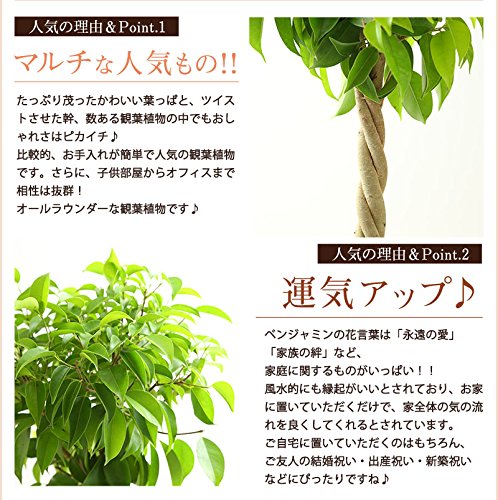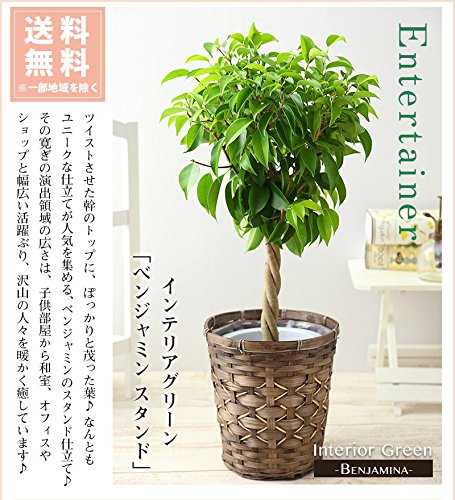 BunBunBee 観葉植物 ベンジャミンスタンド【6号鉢・メッセージカード・バンブー製バスケット付き】
