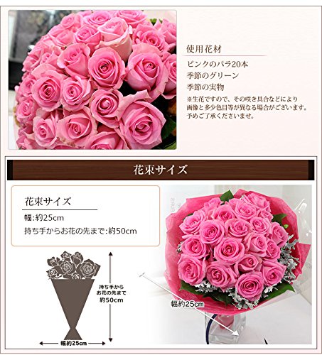 BunBunBee ローズ20本のブーケ (ピンクローズ)