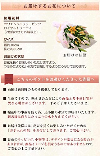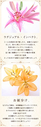 - 色の濃淡、姿等が写真とは多少異なる場合がございます。尚オリエンタルリリーの植性上、輸送途中での花びらの劣化を防ぐためできるだけ蕾の多い状態でお届けいたします。予めご了承くださいませ。