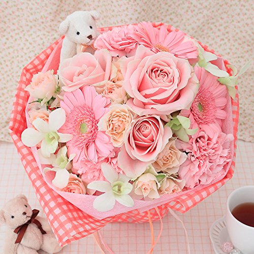 甘~いピンク合わせのブーケに、リトルベアがキュートなエッセンスをプラス♪ふ~んわりあの方の笑顔がこぼれます!
