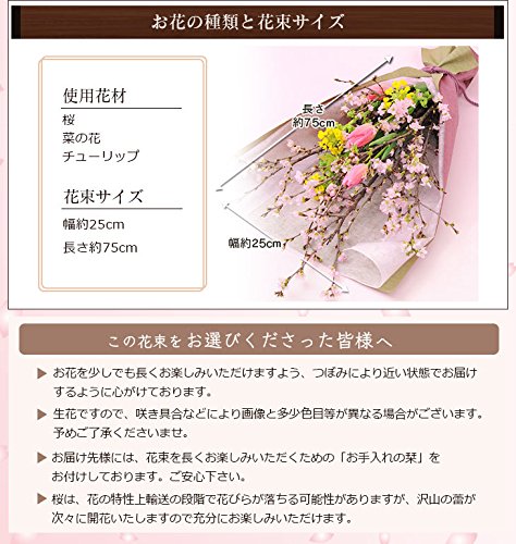 - 桜は、花の特性上輸送の段階で花びらが落ちる可能性がありますが、沢山の蕾が次々に開花いたしますので充分にお楽しみいただけます。※なるべく蕾の状態でお届けいたします。