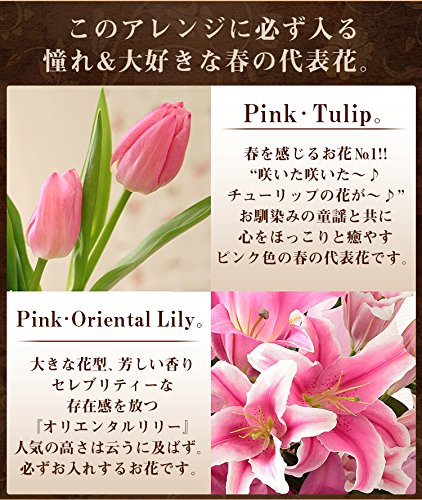 - 使用花材:必ず入る花材: オリエンタルリリー・バラ(春はチューリップ)・旬を迎えたピンクのお花&グリーン。
