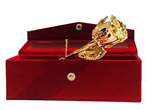 Buycrafty 24k Gold Plated Natural Rose With Exclusive Red Velvet Box Birthday Christmas Gift Men,Women,Girl & Boy