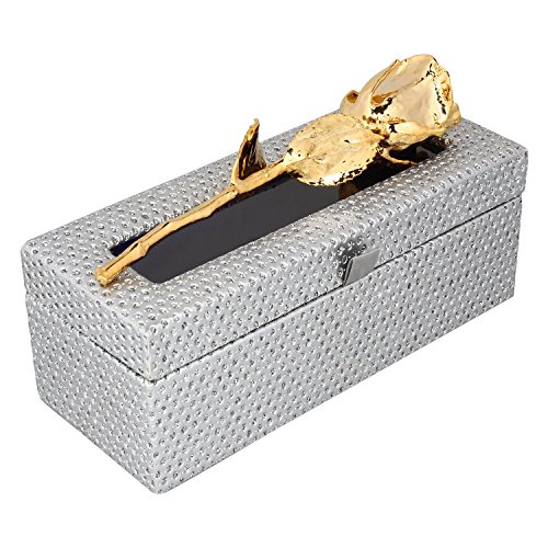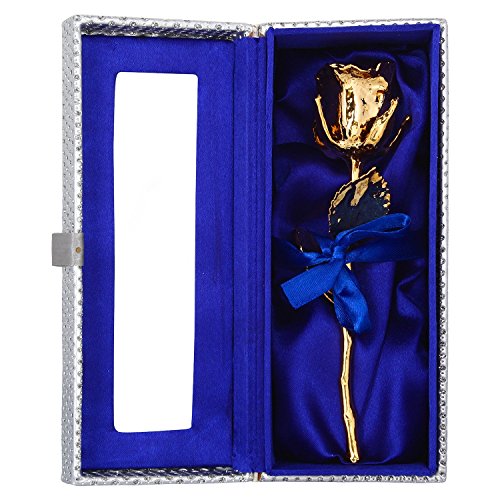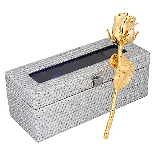 Buycrafty 24K Gold Dipped Natural Rose With Beautiful Silver Box Best Gift for Valentine's Day, Mother's Day, Anniversary, Birthday Gift