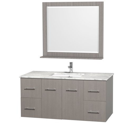 - Wyndham Collection Centra 48 inch Single Bathroom Vanity in Grey Oak with White Carrera Top with Square Porcelain Undermount Sink