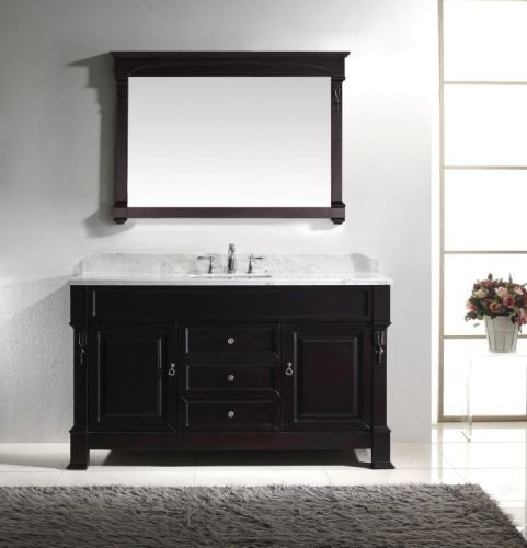- Virtu USA GS-4060-WMSQ-DW 60-Inch Huntshire Single Sink Bathroom Vanity Dark Walnut with Italian Carrara White Marble