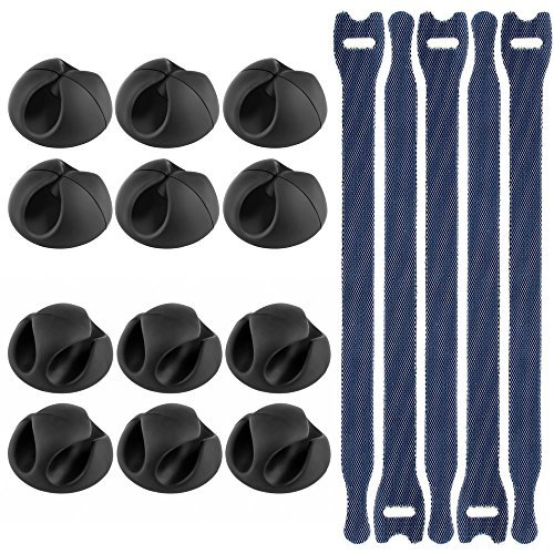 - Vastar 12 Pack Desktop Cable Clips Holders Cord Management System Black and 5 pack Reusable Cable Ties