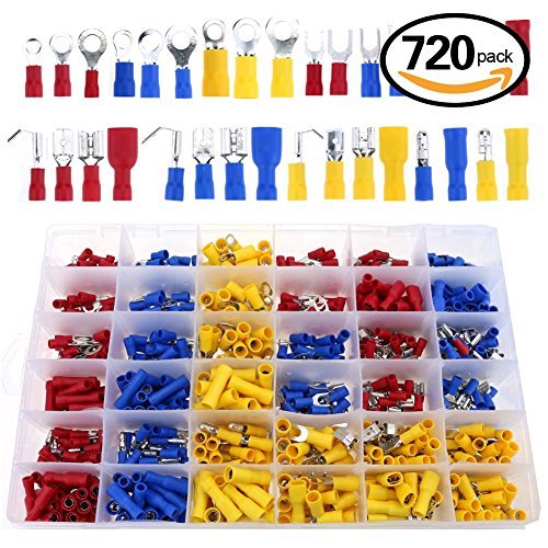 - Glarks 720pcs 22-16 / 16-14 / 12-10 Gauge Mixed Quick Disconnect Electrical Insulated Butt Bullet Spade Fork Ring Crimp Terminals Connectors Assortment Kit
