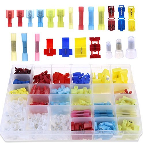 - Glarks 465pcs 22-16 / 16-14 / 12-10 Gauge Heat Shrink Nylon Electrical Insulated Quick Splice T-Tap Flag Closed End Butt Female / Male Spade Crimp Terminals Connectors Mix Assortment Kit