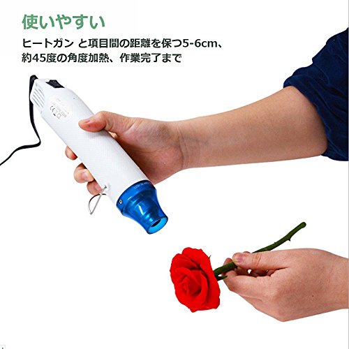 - 4.使いやすい:ヒートガン と項目間の距離を保つ5-6cm、約45度の角度加熱、作業完了まで。
