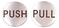 Blank Indicators are Also Available. One Push and One Pull Indicator Per Set Five Architectural Finishes 2" (50.8 mm) Diameter This set of CRL Round Push/Pull Indicators are made of high quality Stainless Steel. They are applied using high bond tape that is pre-installed on each Indicator's backside. The etched letters are 5/8 inch (16 millimeter) high so they can be easily read. Color: Polished Stainless Diameter: 2 in (50.8 mm) Minimum Order: 1 Set