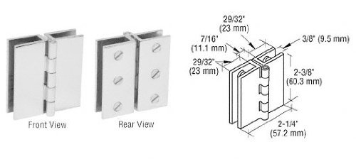 C.R. LAURENCE EH192 CRL Chrome Large Glass-to-Glass Out-Swing Set Screw Hinge. CRL"s newest selection of hinges offers something for everyone. Our CRL Large Chrome Glass-to-Glass Out-Swing Set Screw Hinge is one of the most popular sizes and these hinge are still new to the market! You can"t beat the look of these hinges for you showcase and stereo cabinet needs. The glass is secured with plastic tipped set screws for no-drill attachment. The maximum recommended door width is 18" (457 mm). Maximum weight should not exceed 20 lbs. (9 kg). Two per pack..