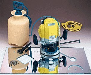 This CRL Production Router System is an amazing glass and mirror fabrication tool designed for use in any glass shop. The router can be used on material up to 1/2 inch (12.7 millimeters) thick and is designed for full time production routing. The unit is built around a DeWalt?"? 120 volt 60 hz Router, a precision built three HP machine with an 8,000 to 23,000 RPM electronically controlled speed range.
