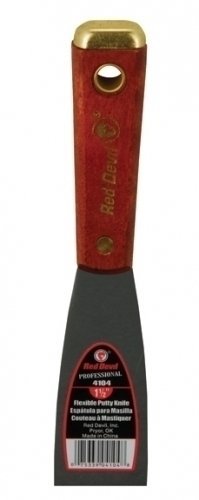 This quality CRL Red Devil Flexible Putty Knife has a precision ground, tempered, high carbon tool steel 1-1/2 inch (38 millimeters) wide blade. The blade is lacquered and set in a polished hardwood handle.