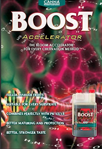 CANNABOOSTはCANNAのパワフルな開花促進活力剤です。短期生長型植物専用に開発され、品質が改善され収量がアップします。CANNABOOSTは、花芽の分化と形成を促進し、大きな果実へと導きます。果実の大きさと成熟がそろうので、収穫時期のバラツキが少なくなります。CANNABOOSTがスペシャルである理由は、収量をアップさせるだけではなく、風味と食味(CANNAユーザーが求めるモノ)も向上させてくれます。