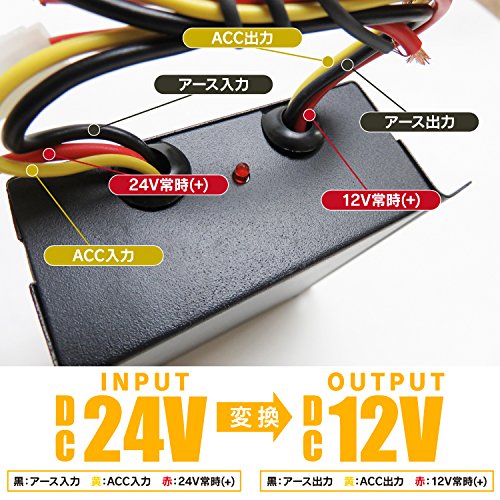 DC-DC コンバーター 変換器 変圧器 DC24V→DC12V 30A ACC電源付 トラックパーツ 24V車両で12V用パーツが使用可能!