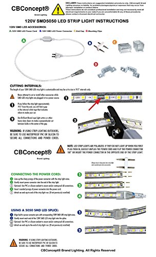 CBConcept ® 80フィート120ボルト高出力LED smd5050フレキシブルフラットLEDストリップロープライト – [クリスマス照明、インドア/アウトドアロープ照明、シーリングライト、キッチン照明] [調光機能付き] [ Ready to Use ] [ 7 / 16インチ幅X 5 / 16インチ厚さ] 80 Feet 120VSMD5050-24.5M-WW