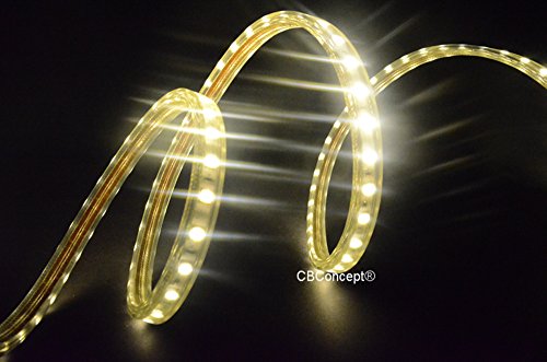 CBConcept® LEDストリップロープライト 164フィート/巻 120ボルト 高出力LED SMD5050 フレキシブルフラット - [クリスマス用ライト、屋内/屋外ロープライト、天井照明、キッチン照明] [調光機能付き] [すぐに使用可][幅7/16インチ×厚さ5/16インチ] 164 Feet 120V-SMD5050-50M-WW