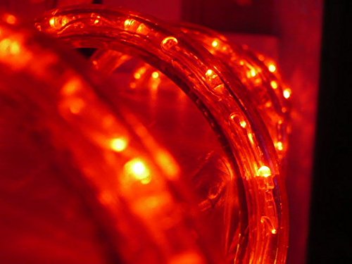 CBConcept 120VLR16.4FT-R RED 16.4 Feet 110V-120V 2-Wire 1/2 LED Rope Light, 1.0 LED Spacing; Christmas Lighting, Indoor / Outdoor rope lighting;Each Kit Includes:[1 X Pre-installed 5' Standard Power Cord with Power Connector] [1 x End Cap] [2 Mounting Clips+Screws each 3.3ft];[Energy saving - regular Rope Light: 5.5Watts, LED Rope Light: 0.4Watts per foot];[Cool to touch when lit and Flexible and easy installation.] [Connect up to 150 FT][Waterproof IP65. Indoor & Outdoor use.];[Voltage: 120V . Can be plugged direction into house power out. Safety fused plug for over current protection. No transformer is needed.]