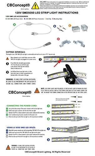 CBConcept ® 9.9フィート120ボルト高出力LED smd5050フレキシブルフラットLEDストリップロープライト – [クリスマス照明、インドア/アウトドアロープ照明、シーリングライト、キッチン照明] [調光機能付き] [ Ready to Use ] [ 7 / 16インチ幅X 5 / 16インチ厚さ] 10 Feet B01JRADTJM
