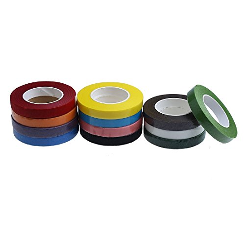 CCINEE フローラテープ 造花テープ (褐色 緑 深い緑 白色 青 ピンク 赤 オレンジ 黒 紫 黄色 深い青 12巻セット) 幅13mm×長さ23m
