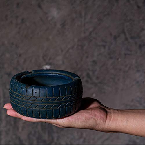 CXQ パーソナリティ創造性レトロパストラルセメントタイヤ灰皿の装飾と装飾 (Color : Blue)