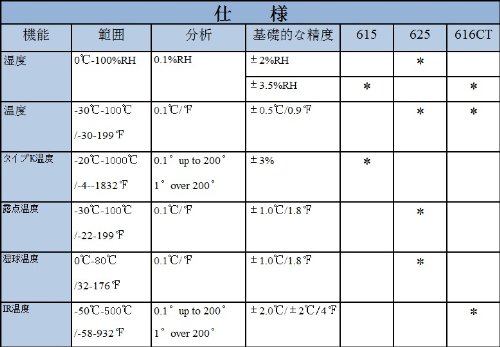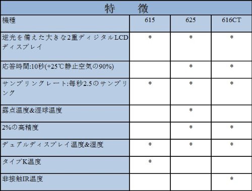DT-625は、ディジタル湿度&湿球温度&露点温度を備えた温度メーターです。