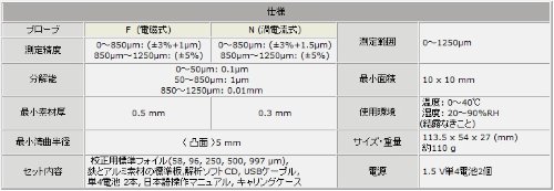 用途:車やオートバイの塗装厚や被膜検査、亜鉛、銅、クローム、スズのメッキ厚測定、樹脂、ゴム、ホーロー等のライニング厚測定、鉄素地の酸化膜、溶射膜測定、アルミ製品、ステンレス製タンク等の塗装検査、アルミ製品、アルミサッシ等のアルマイト測定等