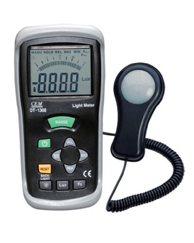 手動レンジ切り替えで0~400,000 Lux/ 50,000 フットキャンドル(fc)と幅広い照度測定に対応できる低価格のデジタル照度計です。照度を数値並びにバーグラフで表示します。DT-1308には光源の違いを自動補正しますので、タングステン電球、蛍光灯、水銀灯、ナトリウム灯等、どのような光源でも照度測定が可能です。