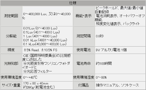 用途: 工場/オフィス/事務所/病院/住居などの照明の管理、研究室/ラボなどでの光学実験、電球/螢光灯などの光源管理、農業/林業/水産業分野などの照度管理(光周期コントロール)