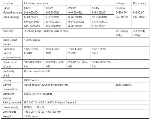1.500Vから5000Vまでの、および60GΩまでの広い範囲測定。