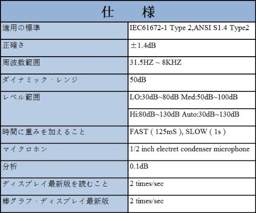1. 騒音標準は、ユニットIEC61672-1 CLASS2。