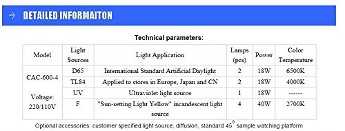 CAC-600-4 Color assessment cabinet box is widely used in textile, printing and dyeing materials, visual assessment of color fastness, color proofing, color identification and fluorescent material. For accurate proofing products color bias the samples, production, and quality inspection and acceptance criteria in the same light source, so we can ensure the quality of goods to meet the requirements of the colors, to improve quality and market competitiveness.
