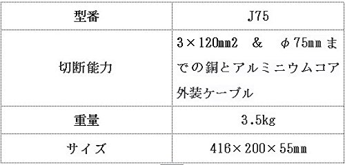 切断能力:3×120mm2銅コア外装ケーブル、通常の銅アルミケーブルとφ75mmまでのアルミコア外装ケーブル