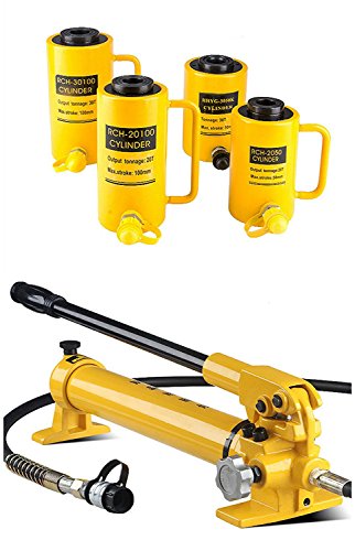 CGOLDENWALL 油圧式ジャッキ20t 中空 プランジャー 50㎜ 100㎜ 焼付塗装 張力 スラスト可ジャッキ ポンプ付 (RCH-2050)