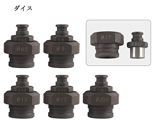 CGOLDENWALL φ6.5~20.5mm電動油圧式パンチャー 5種ダイス付き油圧パンチ 穴あけ工具 銅、アルミ、鋼、鉄板、4~6#アングル等の穴あけ加工に
