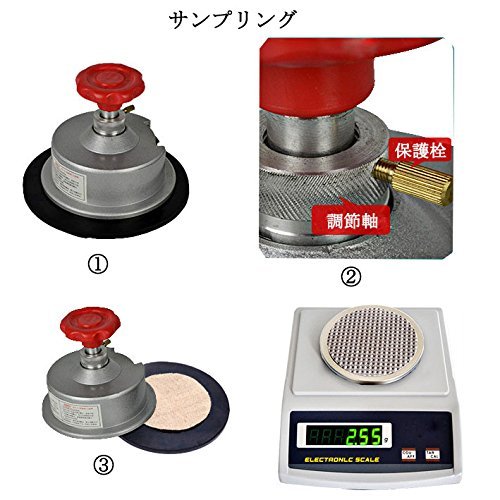 3.サンプラートレイを左手で固定し、右手でノブを押します.1〜2回回転させてたら、100cm2のサンプルを取得。