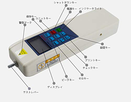 - 3.機能:重力加速度設定機能、ピークホールド機能、自動ピーク機能、ブザーアラーム機能、データ保存機能(896個のテスト値)、データ出力機能