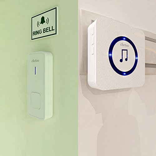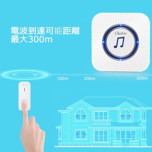 CHETOO ワイヤレスチャイム 呼び出し 押ボタン送信器チャイムセット 防水 防塵 ドアベル 呼出音楽55メロディー選択可 配線不要 LEDライトが光る 呼び鈴玄関 受信機2個 押しボタン送信機1個 白 日本語説明書付き