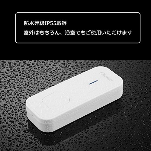 - 高感度受信機採用で、電波の飛距離は屋外見通し、最大1300フィート/400メートルの無線範囲をサポート致します。送信機は防水等級IP55取得。室外はもちろん、浴室でもご使用いただけます。