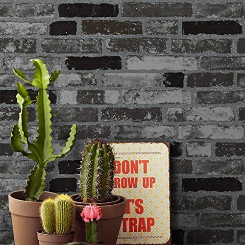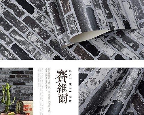 SOOMJ DIY 3D立体 なレンガ 壁紙 壁用 おしゃれエンボスパターン 壁紙シール ベッドルーム リビングルーム 服飾店 装飾 53cm×10m(ブラック)