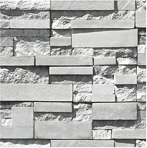 SOOMJ 現代のレンガの壁紙フェイク錆トスカーナのレンガの壁ロール紙は、レアルアップに見えます グレー