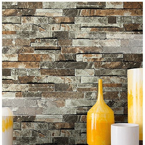 SOOMJ 現代フェイクブリックストーンテクスチャ壁紙ロールイエローマルチ3Dブリック・ブロックのホームルームの装飾